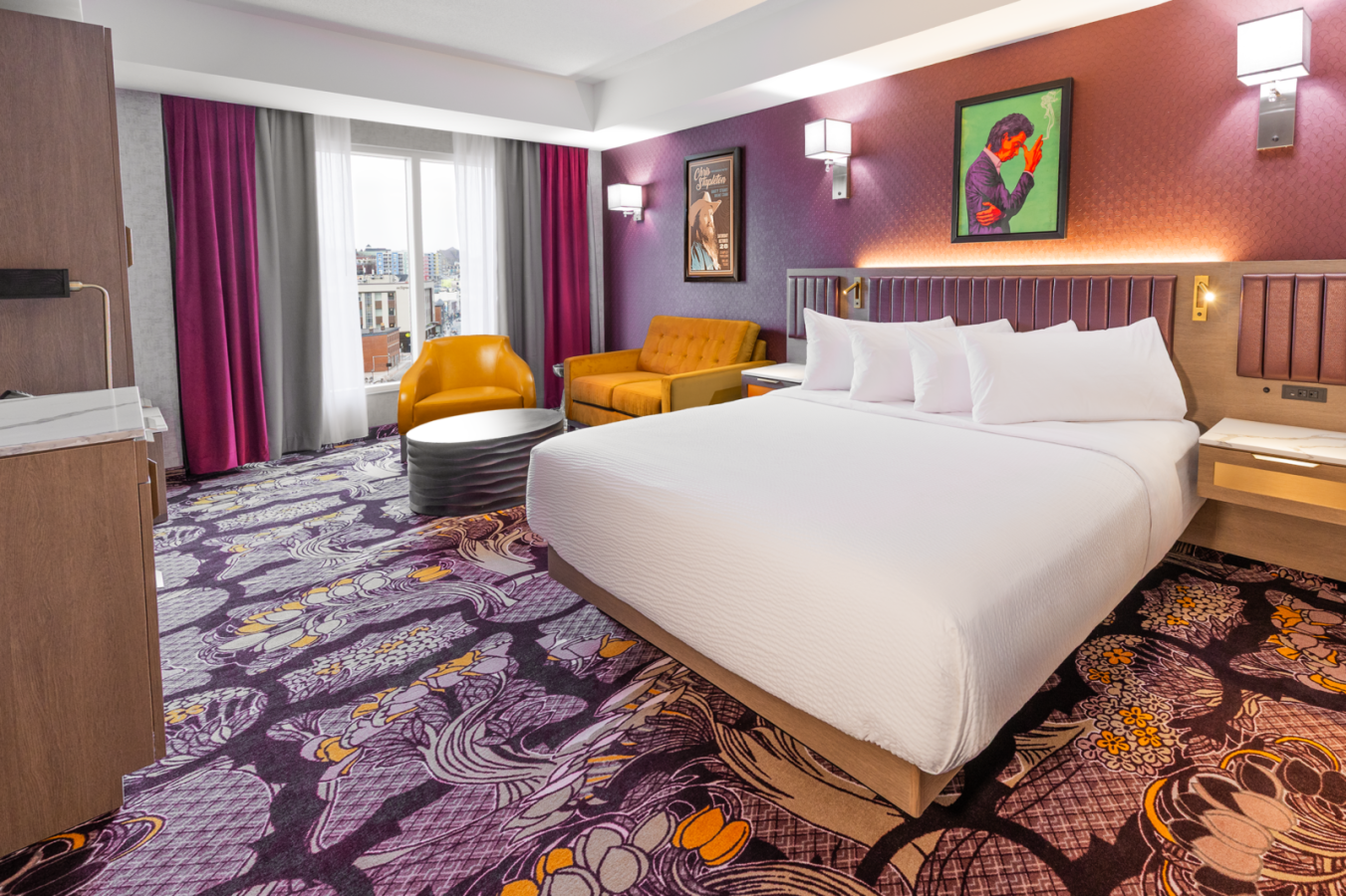 Relax in style in our King Rooms, where striking design and exceptional comfort come together. With a spacious layout, a plush king-size bed, modern amenities, and a cozy sofa, these rooms offer the perfect space to unwind.