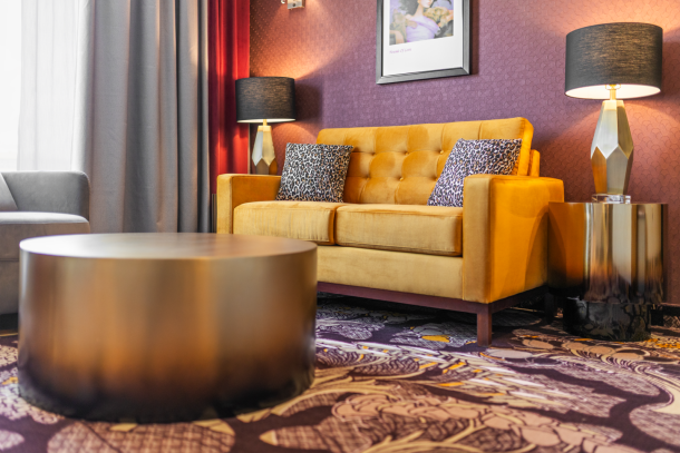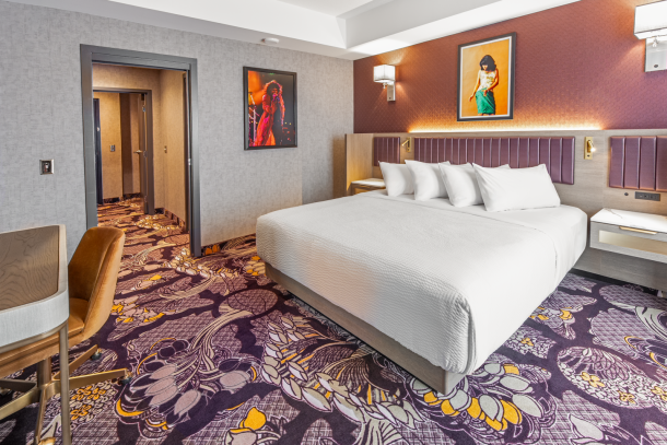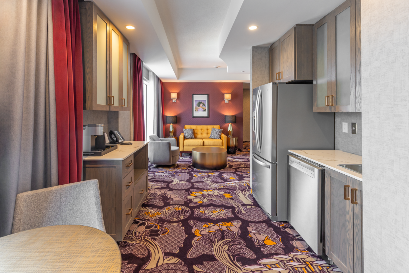 The Executive Suite at JAG is where style, comfort, and practicality come together in perfect harmony. This spacious suite features a king-size bed, a separate seating area with a sofa and two chairs, and 1.5 baths for extra convenience.
