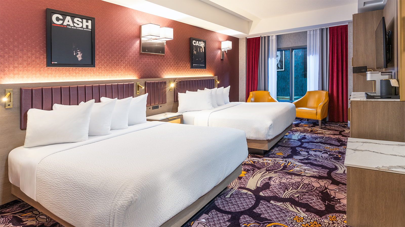 Our Gallery View Double Queen Rooms offer a stylish retreat with two plush queen-size beds, sleek furnishings, and modern amenities. Overlooking a light-filled interior gallery, these rooms provide a peaceful, comfortable escape- perfect for families, friends, or anyone seeking a quiet getaway.